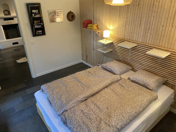 Jetzt ist es soweit und ich kann euch mit voller stolz die erste Übernachtungsmöglichkeit in der Bäckerei präsenteren. Zur eifachheit lassen ich das ganze über Airbnb laufen. Zurzeit biete ich ein Doppelbett an mit Frühstück. Mit dem Angebot möchte ich der Wemakeit Gönner oder auch denn sonstigen Unterstützer die Möglichkeit geben die Bäckerei von nahen anzuschauen und vielleicht die eine oder andere Brot Idee mitzunehmen in die Schweiz. Natürlich kann Mann/ Frau auch ganz unverbindlich mal selbst Hand anlegen und bei mir lernen Brot zu backen. Die Übernachtungsmöglichkeit ist offen von April - Oktober, Gerne stelle ich euch Freizeitaktivitäten oder sonstiges zusammen oder gehe mit euch Fischen.
