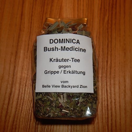 Die Teemischung gibt es auch in Kombination mit der Rezeptsammlung und der persönlichen Postkarte aus Dominica für 80.-