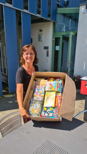 Meanwhile, Victoria has packed most of her beloved Donald Duck books in a big box which Nik just dropped off at ’Kinder- und Jugendheim Lutisbach’ in Oberägeri. This small children’s foster home takes care of up to 22 kids in specific and socially difficult circumstances! Most of the kids will have to stay in Lutisbach during the summer holidays so hopefully the books will give them some welcome distraction!