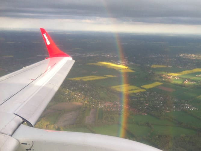 Anfang Mai reiste ich zu Meret Mendelin nach Hamburg und begleitete sie da drei Tage mit der Kamera. Auf dem Weg nach Hamburg sah es aus als fliege ich durch den Regenbogen. :)