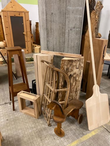 Die Vorbereitungen sind in vollem Gange. Neulich hat Daniel zwei tolle gebrauchte Hobelbänke erstanden - die werden im Holzartenmuseum aufgestellt, damit ihr als Besucher*innen auch mal Hand anlegen könnt! Nebenbei versorgen wir private Aufträge, gerade ist ein richtig schöner Naturholz Coiffuretisch in Arbeit:)