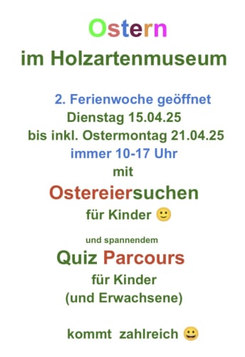 Diese Ferienwoche haben wir geöffnet: Immer von 10-17 Uhr. Dienstag, 15.04. - inklusive Ostermontag, 21.04.2025.