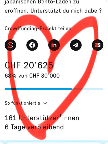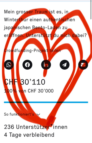 Hoi mittenand! Meine Crowdfunding-Kampagne hat heute 40 % ihres Zielbetrags erreicht. Noch 17 Tage verbleibend!⏳Lasst uns gemeinsam 100 Prozent des Ziels angehen! ❤️🔥❤️🔥❤️🔥 Liebe Grüsse, Yoshi
