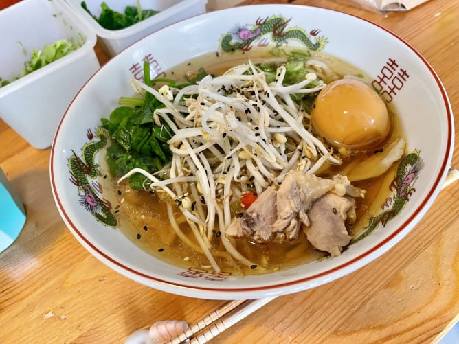 Die heutige Bio Hühnchen-Sojasauce-Ramen werden mit meinen handgemachten Ramen-Nudeln serviert. Das Mehl stammt aus Stadtland Winti ,lokal biologischem Anbau und wird regional gemahlen. Das Gleiche gilt für die Shiitake-Pilze. Die Sojasauce ist aus Brauerei Ferment in der Schweiz. Der Konbu Seetan,für die Herstellung von Brühe, stammt aus Hokkaido. Frisch gepflückter Spinat und Sprossen, frisch gekocht.Fast alles von Lokal.