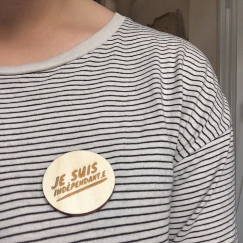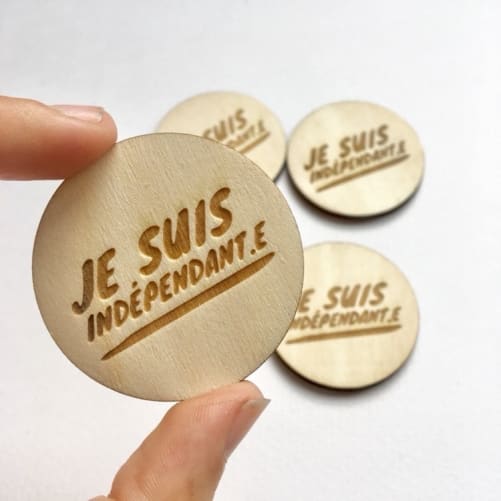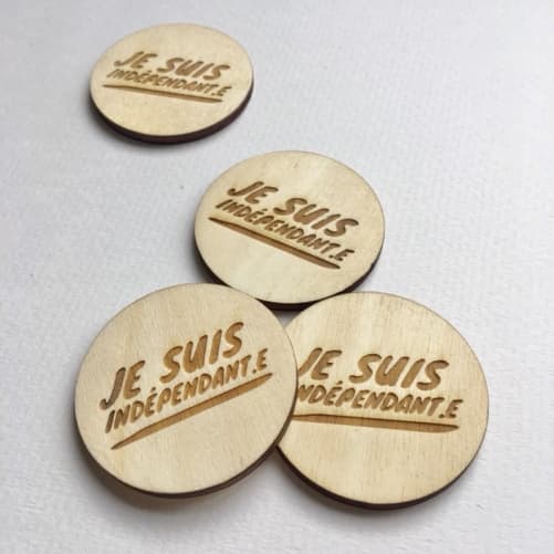 nouvelles contreparties sont arrivées! Des pins en bois arborant le logo «Je suis indépendant» et réalisés par petiteligne.ch. Toutes celles et ceux qui ont acheté une contrepartie dès 60.- francs en recevront également un.