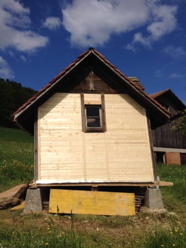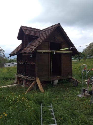 Wir, das sind Patrick, Remo und Stefan, wollten im Sommer 2014 das Bienenhaus unseres Urgrossvaters auf dem Pfannenstiel vor dem Zerfall retten. Kurzerhand wurde das gesamte Bienenhaus schweisstreibend restauriert und die tragenden Balken sowie die verfaulten Holzwände erneuert. Auch die Fluglöcher wurden von Grund auf neu erstellt und mit den typischen Farben versehen.