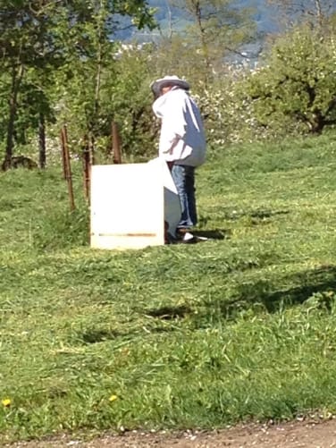 Es hatte keinen Monat gedauert, bis wir Besuch vom Imkerverein Meilen bekamen. Werner Haller wollte sich das Bienenhaus in seiner neuen Pracht anschauen und brachte zu unserer Überraschung direkt einen 3kg Bienenschwarm mit.