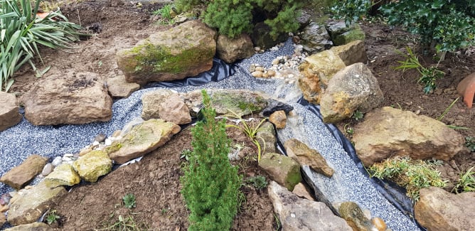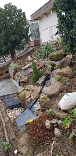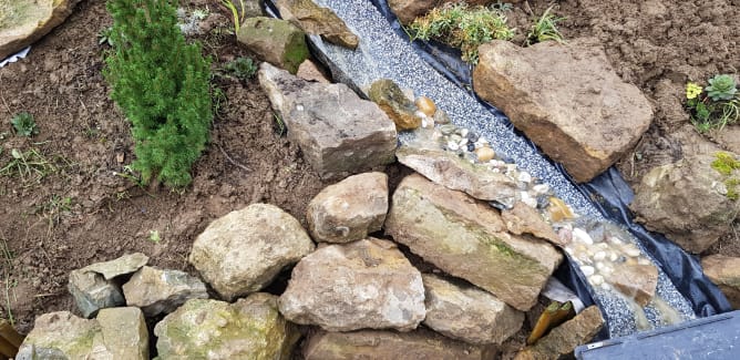 r Bachlauf ist bald fertig. Dieser befindet sich auch im Gehege der Kaninchen und Hühner.