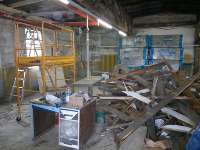 Während der Entwicklung des Projektes hat die Menge der Auflagen der Behörden stetig zugenommen und unser hart erspartes Budget immer stärker strapaziert. Unsere Finanzen reichten für den Umbau und die Sanierung des Gebäudes (Kanalisationsanschluss, Lärmschutzmassnahmen, Brandschutz und Isolation) sowie für den Innenausbau (Bar, WC).