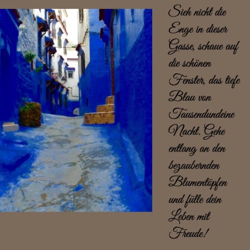 Lass dich durch dieses Wohlfühlbuch inspirieren und nutze die imposanten Bilder und dazugehörigen Anregungen für deinen Alltag. Ob an einem plätschernden Fluss im Herzen der Pfalz, in der idyllischen Berglandschaft Davos oder mitten in einer farbenfrohen Innenstadt Marokkos: Gewinne Impressionen auch durch meine schönen Forografien, die dir gewiss Freude bescheren und positive Spuren in deinem Herzen hinterlassen werden. Ruhe und Entspannung gehören für den ein oder anderen zum Abschalten genauso wie Kreativität. Du musst nicht gleich ein Baumhaus bauen, um kreativ zu sein! Zeichnen, etwas Leckeres backen, deinem Baby ein Lätzchen nähen oder ein Stück Holz aus dem Garten holen und daraus einen coolen Messerblock machen, reicht völlig aus. Ideen, um sich wohl zu fühlen und den Alltag positiv zu stukturieren sind gegeben; du musst nur noch mit voller Freude ran. Übrigens, warum sich mein Kater Leo mit Kaffee wohlfühlt , erfährt ihr auch….;)