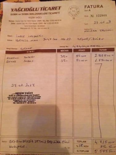 Von diesem Geld wurden 120 EUR für die Bezahlung der Rucksack-Beutel aus Izmir verwendet; der Rest stand für die Finanzierung von Öfen zur Verfügung.