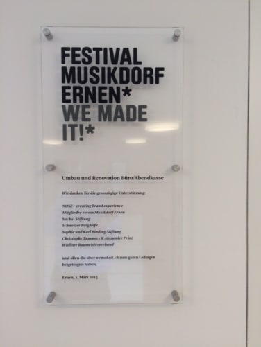 Die Umbauarbeiten im Festivalbüro sind abgeschlossen. Der neue Kulturtreff im Musikdorf Ernen ist eröffnet. Komm doch mal vorbei.