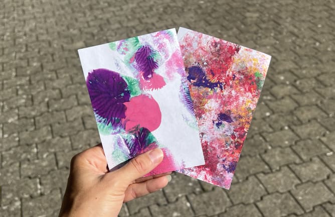 Noch erhältlich sind die wunderschönen einzigartigen Postkarten, die im Workshop mit Karin Kurzmeyer entstanden sind und deine Worte auf der Rückseite perfekt abrunden.