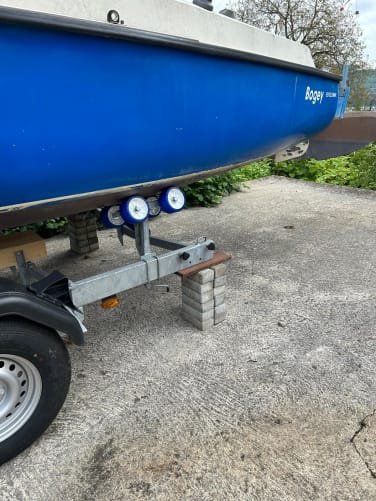 Elle est sagement stockée à sa place à terre et attend nos bons soins. Nous avons été lui rendre visite le week-end dernier et avec l’oncle et la tante de Stéphanie avons pu tout mettre en place pour le début des rénovations qui ne sauraient tarder. Il fallait placer des cales sous la remorque pour soulager les amortisseurs et les pneus, comme tout va rester en place plusieurs mois. Il fallait aussi sécuriser le tout afin que nous puissions monter à bord pour travailler. Le moteur a été enlevé et stocké à l’abri. Tout est prêt et nous avons élaboré notre plan de rénovations. Nous vous en parlerons évidemment. En attendant voici quelques photos. Trouverez-vous le petit moussaillon en ciré vert ?