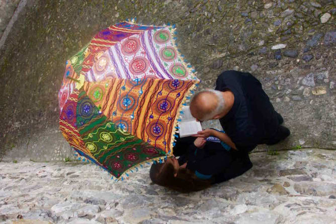 C’était samedi 4 juin. La Maison éclose était l’invitée du 1er Festival du livre romantique au Château de Chillon pour des lectures poétiques sous les ombrelles lumineuses.