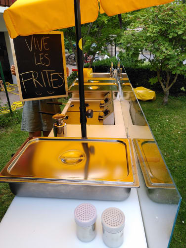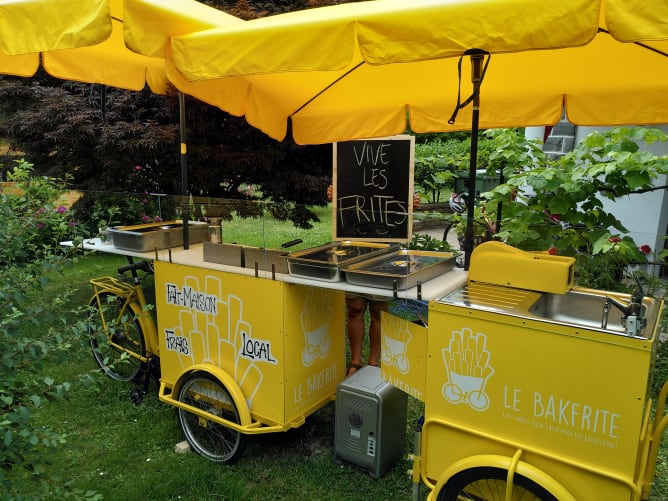 Du coup, semaine prochaine, le jeudi 2 juillet, au marché Cuendet à Bremblens, s’organise une jolie soirée frites et pizzas au feu de bois où bien sûr on sera là avec le vélo à frites :) Il y aura aussi de quoi s’abreuver et même des petits concerts! Vous êtes tous les bienvenu.e.s et on espère vous y voir nombreux!