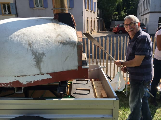 Quelle chaleur humaine autour de ce four! Familles, seniors, enfants: Tout le monde le trouvait bien sympathique en le voyant chauffer dans la rue. Et quel plaisir nous avons eu à l’utiliser!