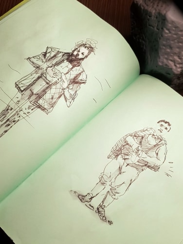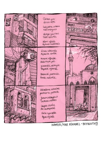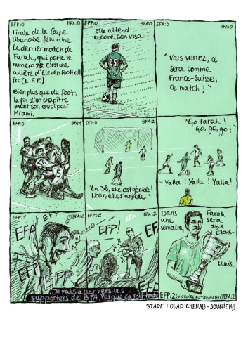 Tout est parti de deux carnets de croquis, l’un rose, l’autre vert. Puis le besoin de raconter, de préserver cette aventure, nous a donné l’impulsion de mettre sur papier une histoire, une anecdote, un échange. Bref, un souvenir pour chaque journée passée au Liban. Chaque matin, nous réfléchissions à ce qui nous avait marqué la veille. Puis commençait notre travail quotidien, entre dessin et texte. Nous avons tenu le rythme. «Le Prix du Pignon» consigne nos 44 jours passés dans ce pays.