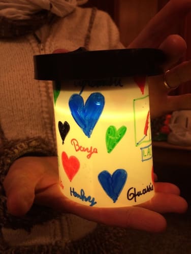 Une lampe avec des materiaux recyclé et le kit de lampe solaire.