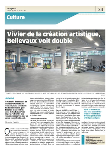 D’avance merci beaucoup et en attendant vous pouvez retrouver l’article, paru aujourd’hui, dans le «Temps» sur les Ateliers de Bellevaux et notre projet d’agrandissement.