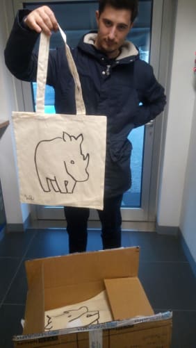 Auch beim alltäglichen Einkaufen deine Begeisterung für den Erhalt der Nashörner zeigen? Kein Problem mit dem neuen Shopper von Sebastiano Pedrotti gezeichnet!