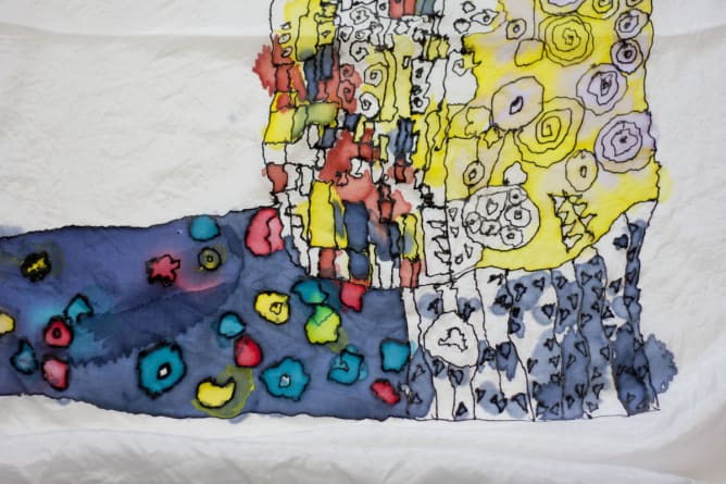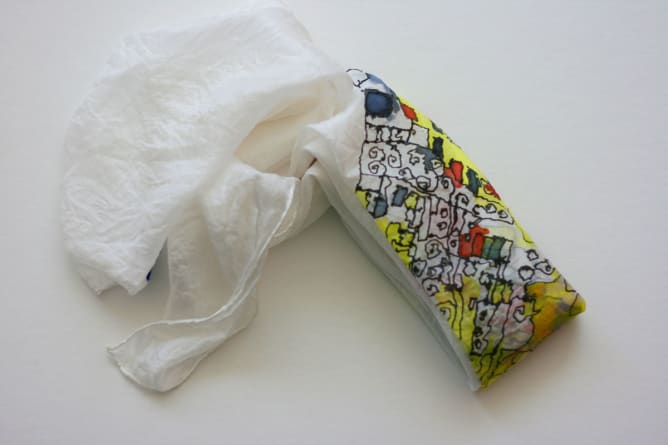 An example of this is a scarf which is not only during the daytime a nice portable utensil with a hand-painted pattern on it; even at night it sparkles hanks to its small built-in LEDs from all its sides. What is special about my project is that it is possible to wash the Textiles in a washing machine – despite their handmade quality and the built-in technology.