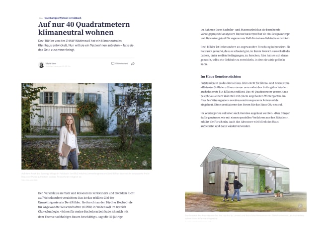 Kurz vor dem Ende in 4 Tagen ist heute ein Artikel über das KREIS Haus in der Zürichsee-Zeitung erschienen. Ihr findet ihn hier: https://www.zsz.ch/auf-nur-40-quadratmetern-klimaneutral-wohnen-796332579558