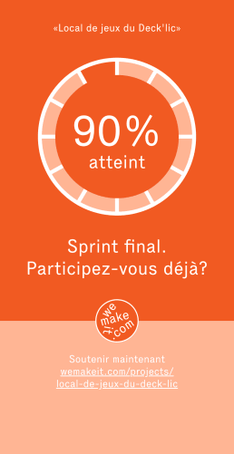Voilà maintenant 1 mois que le Crowdfunding s’est terminé! Que d’aventures depuis… On a continué les travaux afin de rendre le local fonctionnel! Il y a deux semaines, nous avons ouvert nos portes pour l’inauguration et on y a croisé bon nombre d’entre vous, ce qui nous a fait trop plaisir ! Maintenant, on continue les travaux ainsi que l’aménagement afin de rendre le local encore plus acceuillant. On vous acceuille tous les jeudis soir pour du jeu de société (Jeux’di du Deck’lic, ouvert au public !) et on a déjà quelques événements de prévus.
