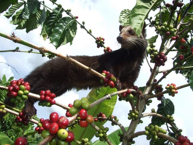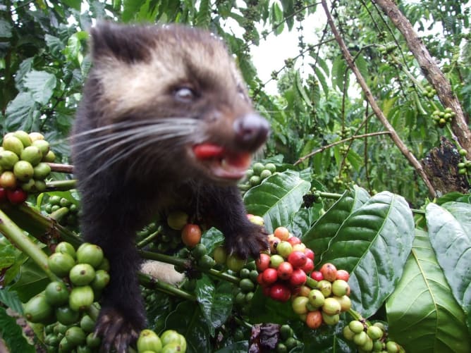 The coffee berry is one of the favorite food for Luwaks. The Luwak will only eat coffee berries that has been ripe perfectly. Because of its weak digestion, coffee beans are not crushed, so it can come out with the civet droppings.