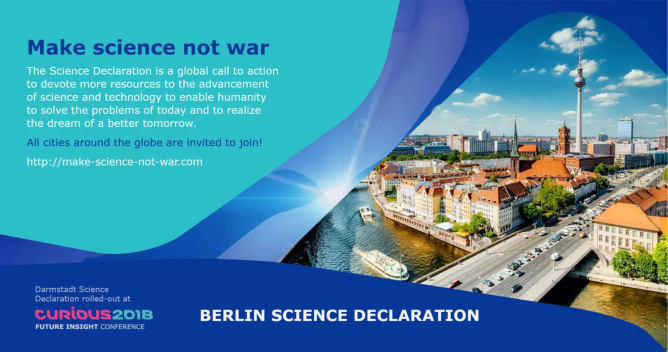 We want to bring the «Make Science Not War» Science Declaration that started in Darmstadt to Zurich, a city at the heart of innovation and global dialogue. This declaration, born at the Curious2018 – Future Insight™ Conference, has already inspired thousands worldwide. Cities likes San Francisco, Berlin, Paris, Boston, Tel Aviv and others have joined.