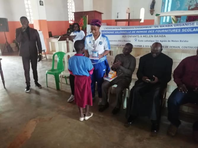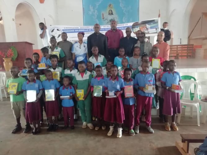 Ce matin, les enfants de Melen-Baaba se sont retrouvés dans l’église du village pour une remise solennelle du matériel scolaire. Il y avait de tout en suffisance. Ce fût un grand évènement que je vais partager en quelques images. Les journalistes devraient en faire un article ainsi qu’une vidéo. Je vous les partagerai quand je les aurai reçus.