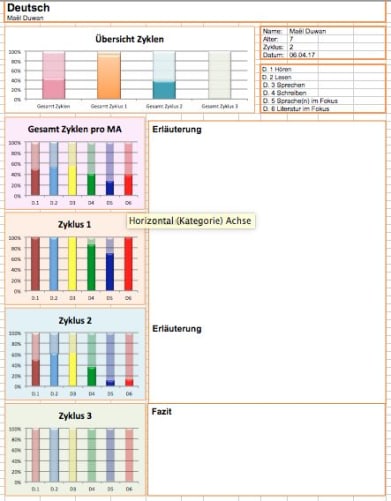 mirroco vereint fächerübergreifendes Lernen mit dem Lehrplan 21. Die Auswertung bietet einen Überblick über alle 11 Schuljahre auf einen Blick - keine Inselsicht.