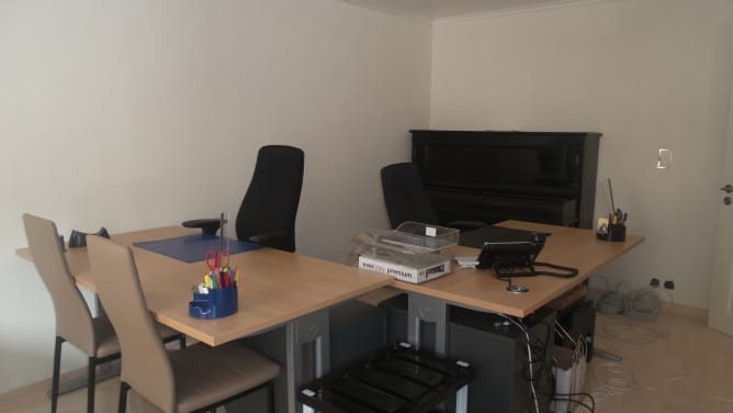 Un tout petit bout de mobilier est installé dans le futur secrétariat; le piano y est aussi déplacé afin de le préserver de la poussière et des travaux dans la future salle de classe…