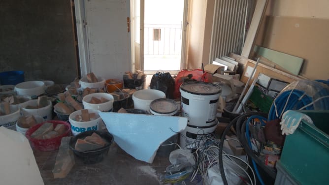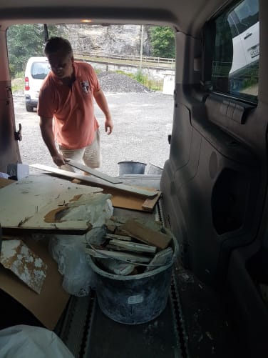 Après avoir terminé ce travail, ils purent ensuite aller à la déchetterie amener, en 3 voyages, presque toutes les briques entassées dans des seaux.