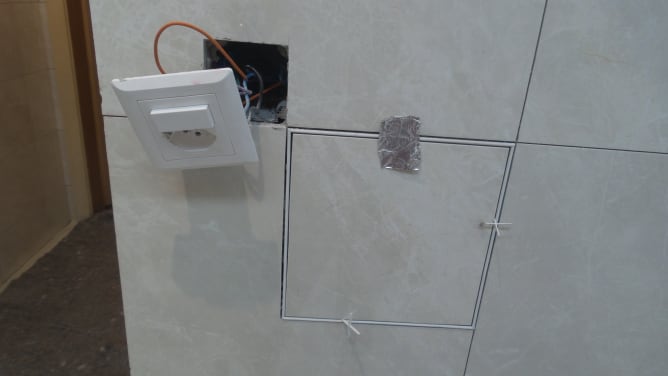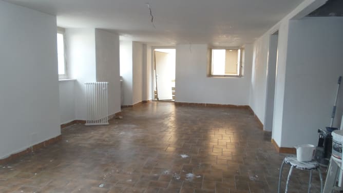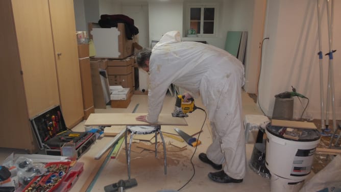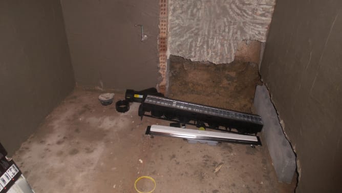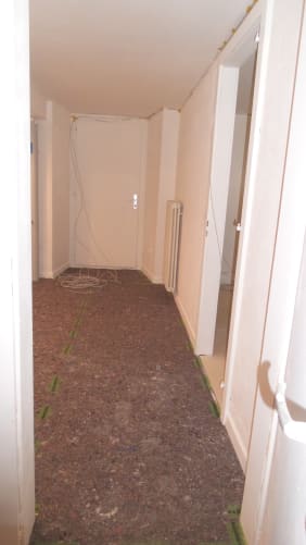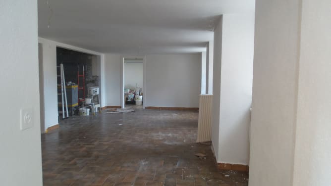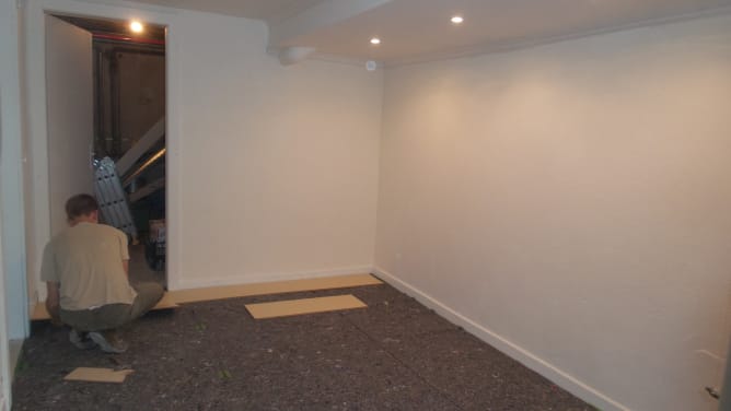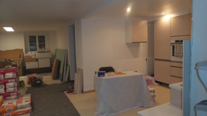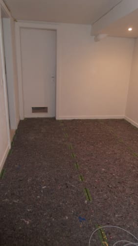 L’emplacement de la future cuisine prend forme… Le sol du vestiaire s’habille enfin plus élégamment :-) !