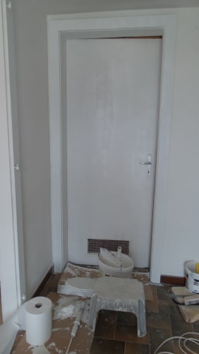 Au retour, vite ! Aux travaux ! Le vestiaire avance…Les portes et les linteaux de celui-ci se font eux aussi contaminer par la couleur blanche ;-)!