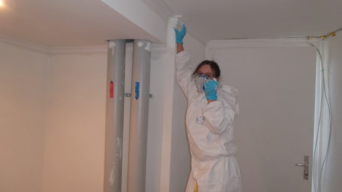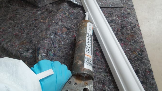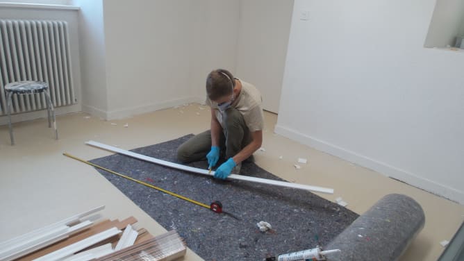 Une fois collées, les moulures durent aussi être peintes, afin de cacher les imperfections dû au mastique, ainsi qu’aux coupes…