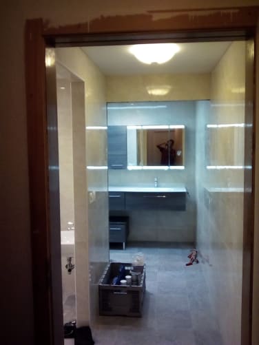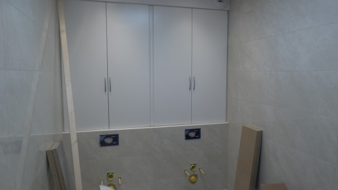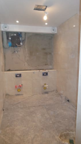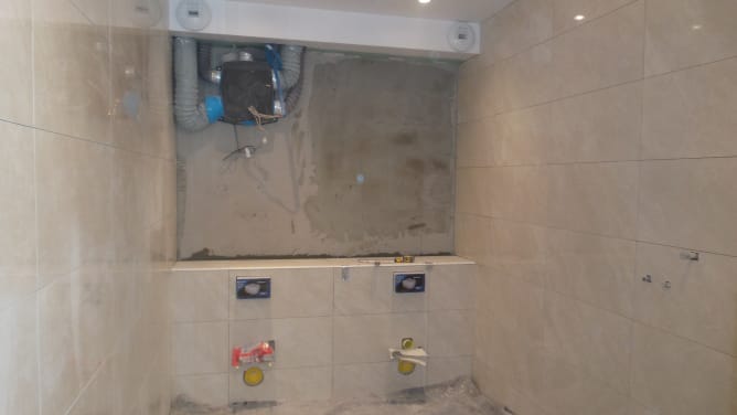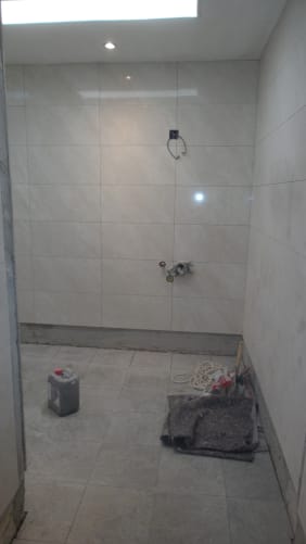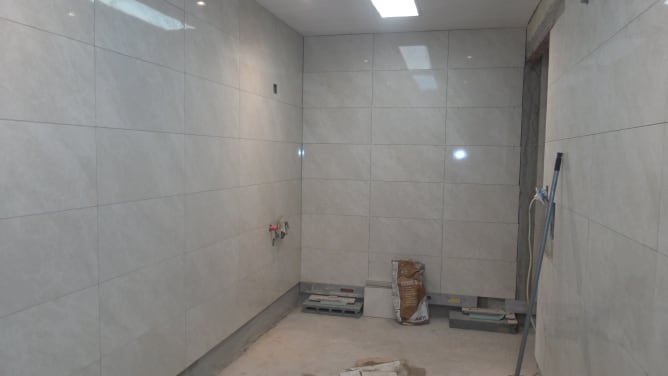 Les salles de bain commencent enfin à ressembler à ce qu’elles devraient être… ! Plus cela prend forme, plus nos cœurs sont reconnaissants de ce miracle qui est en train de se produire devant nos yeux !