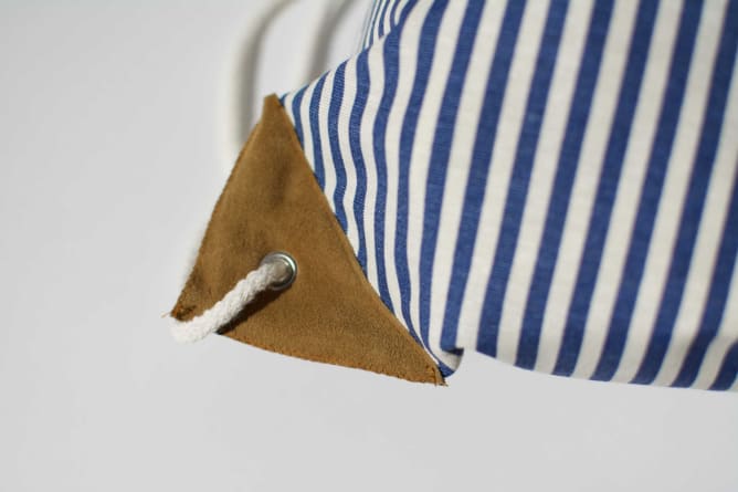 Variante No. 2: Klassischer Turnbeutel mit Reisverschlussfach auf der Vorderseite und Lederecken (60.- CHF)