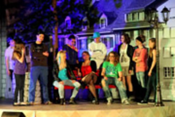 Und so fing alles an: Aus einer verrückten Idee dreier Musiker entstand 2011/12 eine komplette Musical-Eigenproduktion. Der Erfolg war überwältigend: anstatt 5 gab es über 30 Vorstellungen mit über 6’000 Zuschauern und 11 Spielorten. Eine packende Story, eigens komponierte Musik, aufwändige Bühnenbilder und ein Haufen von jungen talentierten Darstellern berührten die Zuschauer enorm. Das Musical, welches den Namen «Über d’Brügg» trug, gewann sogar den 1. Preis beim Jugendkulturpreis Sgoldig Chrönli.