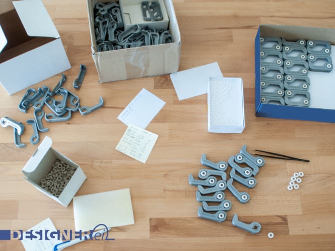 Auf den Bildern sind ein paar Impressionen von der Produktion zu sehen: Fertige my-iCros auf dem Printer, Drucken der Linsenhalter und die bereits fertigen Teile, die auf die Montage warten.