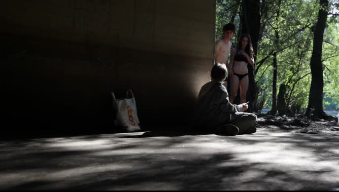 Der Abschlussfilm spielt an einem Tag in Zürich. Es ist ein Multiplot mit 10 verschieden Charakteren, die alle auf eine Art miteinander verbunden sind. Das Interesse liegt hinter dem Sichtbaren, manchmal unverblümt grausam, dann wiederum wunderschöne Momente des Glücks. Der Film ist zu 70 Prozent gedreht. Zurzeit befinden wir uns in den Vorbereitungen für die Szenen in der Psychiatrie, die Erhängung am Baum und die Endszene im Keller, die wir anfangs März drehen werden. Bis dahin werden wir unsere ganze Zeit für die Postproduktion nutzen. Der Film wird im Mai 2013 fertiggestellt und anschliessend an diversen Schweizer Festivals eingereicht.