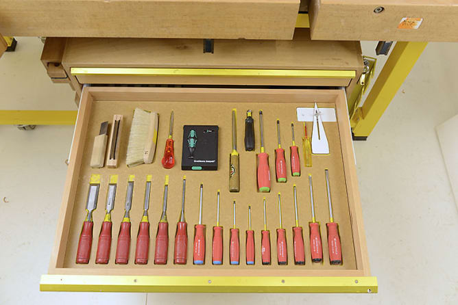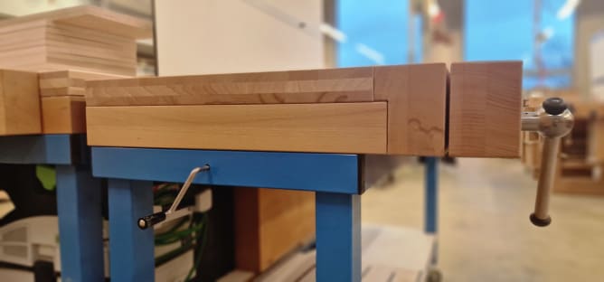 Bitte unterstütze uns, eine attraktive Ausbildungsstätte vieler Schreinerlehrlinge zu werden. Darum möchten wir die alten stark gebrauchten Werkbänke nicht in das neue Ausbildungszentrum nach Itingen zügeln. Ergonomisches Arbeiten ist bei den bestehenden Werkbänken sehr mühsam, da die Arbeitshöhe durch Unterlegen von Kanthölzer angepasst werden muss. Oft wird die eingestellte Höhe übernommen, obwohl diese nicht richtig passt (Du siehst, Gesundheit ist wichtig!). Mit den neuen, höhenverstellbaren Werkbänken kann mit wenigen Handgriffen die Höhe optimal eingestellt werden. Durch das angebrachte Fahrwerk können die Bänke auf einfachste Art umgestellt werden, was für die Nutzung der neuen Werkräume in Itingen eine flexible Einteilung und ein modernes Arbeiten ermöglicht (Damit können wir den Raum optimal ausnutze. Werden die Werkbänke beiseite gestellt, dann nur um zu einem späteren Zeitpunkt wieder ins Zentrum gerückt zu werden). Klassische Spanntechniken werden erweitert und fördern damit den Einsatz als attraktives Hilfsmittel (Selbstverständlich werden die Werkbänke staubig, aber keinesfalls verstaubt, denn sie sind das Herzstück aller Handarbeiten). Die Werkzeugschubladen lassen sich individuell einrichten und können einfach auf neue Werkzeuge und Arbeitsmethoden angepasst werden (Was nützt eine Werkbank ohne Werkzeug - so viel wie Werkzeug ohne eine gute Werkbank). Da in einer Arbeits-Woche jeweils zwei verschiedene Kurse stattfinden benötigen wir 2 Bankräume. Um beide Räume gleichwertig auszustatten benötigen wir 20 Werkbänke mit Werkzeug. Mit Deiner Unterstützung ermöglichst Du uns moderne und ergonomische Ausbildungsplätze anzubieten.