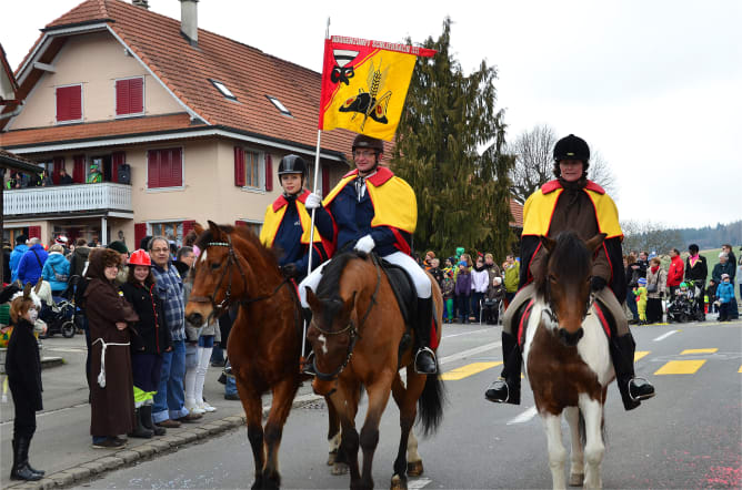 Die Roggenzunft feiert 2024 ihr 60-jähriges Bestehen, Anlass die Beschaffung der Fahne damit zu verbinden. Früher war der Vortrab zu Pferde wichtiger Bestandteil eines jeden Fasnachtsumzugs. Daher hatten wir seit 1980 eine Standarte, die vom ersten Reiter stolz präsentiert wurde. Pferde in einem Fasnachtsumzug werden immer seltener, und unsere Standarte sah bei offiziellen Anlässen neben den grossen Fahnen der anderen Dorfvereine ein wenig ’mickrig’ aus. Daher haben wir an der GV 2023 beschlossen, statt einer neuen Standarte eine neue grössere Fahne zu beschaffen.