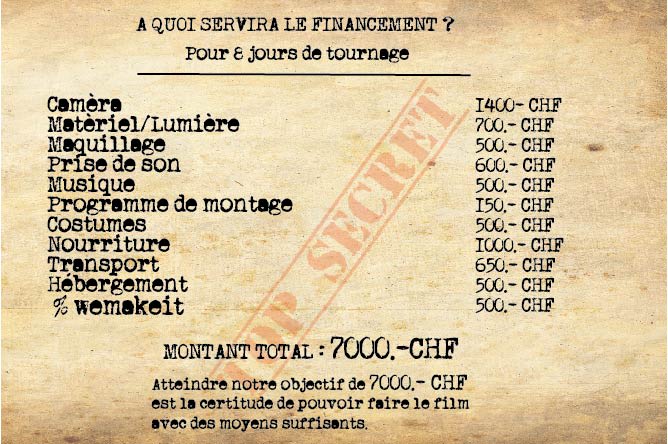 Amoureux du cinéma, nous sommes actuellement une petite équipe de plus de 30 personnes accrochées à ce nouveau projet. Il y a déjà un an que le prémisse du scénario voyait le jour et qu’à présent plusieurs scènes sont tournées par le soin d’acteurs et d’équipes techniques consciencieux et bénévoles! De tous âge (19 à 70 ans) et venant de plein d’endroits différents (Genève, Lausanne, Fribourg, Bern et France voisine), nous avons le privilège de pouvoir échanger et partager ouvertement notre vision afin d’affiner notre travail.