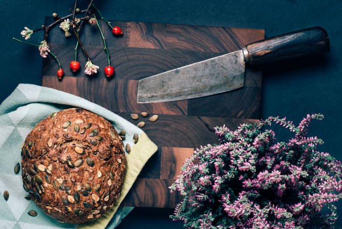 Vergiss Dein Brotmesser, unsere Omnia lässt Dich mühelos Brot, Wurst oder Käse von Hand schneiden. Ohne Strom – mit Deiner puren Muskelkraft.