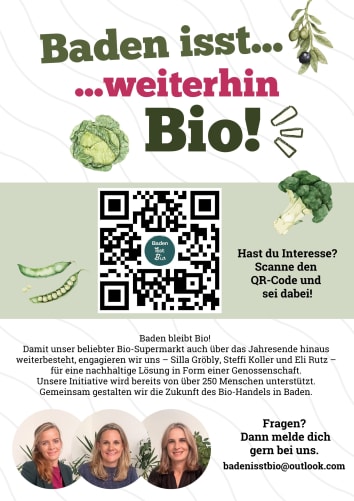 Lasst uns gemeinsam zeigen, was möglich ist, wenn Menschen Verantwortung übernehmen. Baden isst Bio. Baden lebt Gemeinschaft. Baden gestaltet Zukunft. 💚