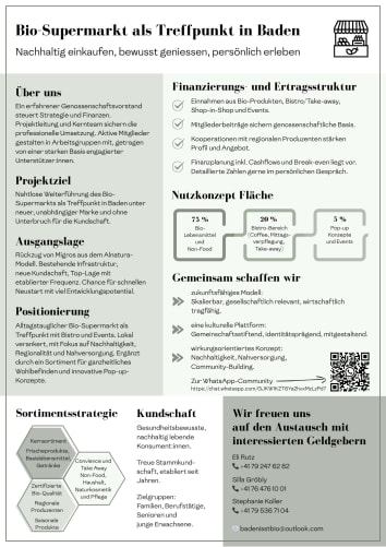 Wir stehen vor einer einmaligen Chance: In Baden wird eine wunderschöne, bereits eingerichtete Ladenfläche frei, mitten im Herzen der Stadt. Wenn wir jetzt gemeinsam handeln, können wir daraus einen lebendigen Treffpunkt für nachhaltigen Genuss und gelebte Gemeinschaft schaffen.