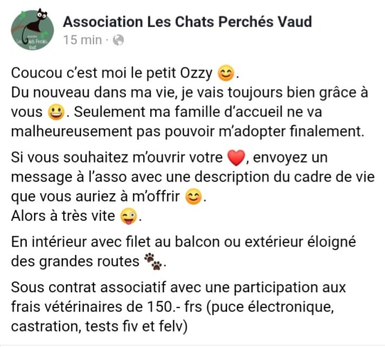Qui me prendrait dans sa chaumière, avec un petit panier douillet et plein de câlins? L association attend votre proposition en message privé. Et moi??? Je me réjouis!