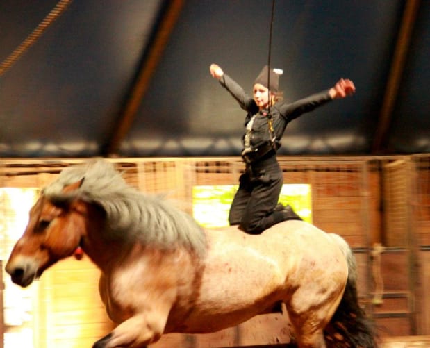 Tout est prêt: spectacle, chevaux, cavalières, voltigeuses, acrobates, décors, costumes, techniciens, piste. Un seul hic dans la Panik: nous n’avons pas de camion pour transporter nos 4 chevaux.